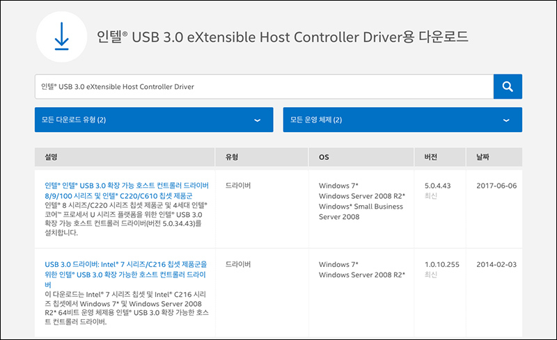 :: 인텔 USB 3.0 eXtensible Host 컨트롤러 드라이버 다운로드 받기 ::