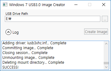 그런 다음, Windows 7 USB 3.0 Image Creator를 통해 윈도우7 설치 이미지 ISO 파일을 경로를 지정해준 다음에 Create Image를 돌려줘야죠.