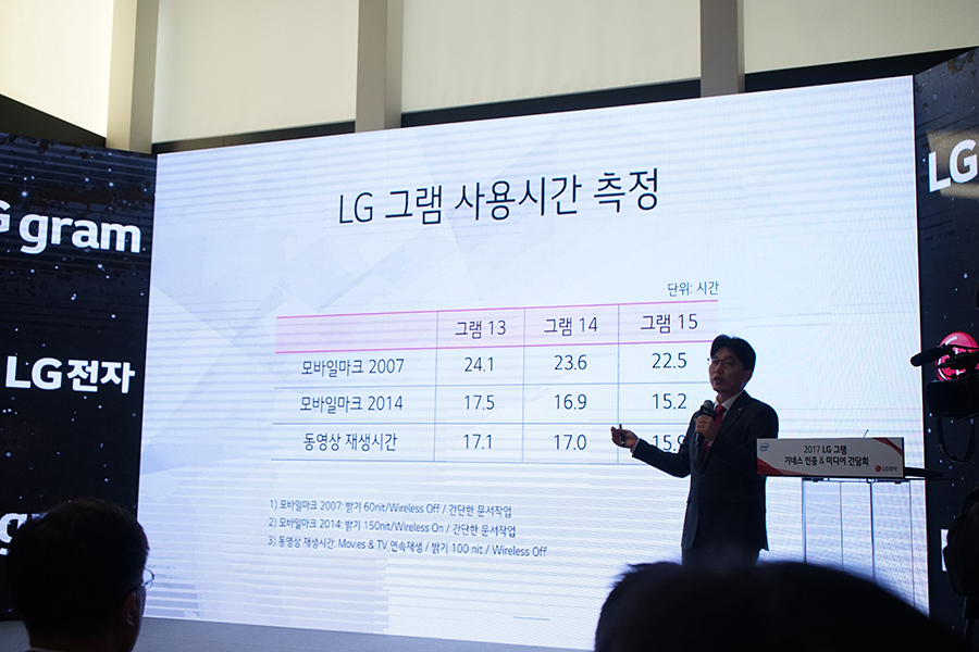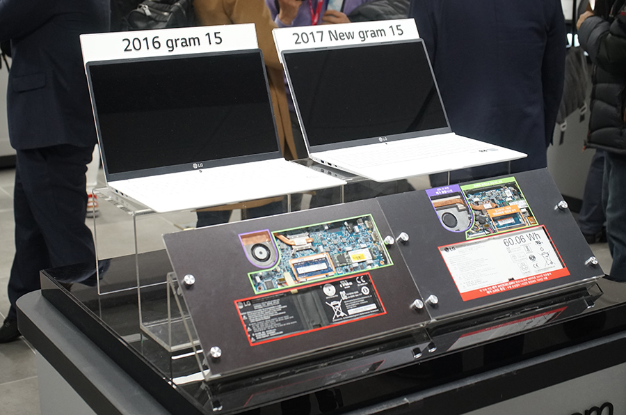 LG그램은 1kg 미만의 무게를 유지하면서도, 배터리는 기존 용량의 1.7배에 해당하는 60Wh로 늘려 하루종일 사용할 수 있는 경량 노트북의 시대를 열 것이라고 한다.