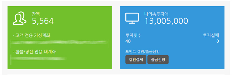 다만 실제 세후 이자를 계산해 보면, P2P 투자는 대부업으로 분류되어 총 27.5%가 세금으로 원천징수 됩니다. 세후 이자는 연 이자로 계산하면 약 14.5% 정도로 계산하면 됩니다. 저는 10만원을 투자했으니 매월 약 1,200원의 이자가 발생하여 3개월 동안 예치금 가상계좌로 받게 되고, 마지막 달에는 원금 10만원을 돌려받게 되죠 ^^