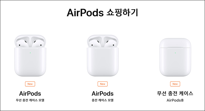 에어팟 2세대는 크게 2가지 선택지가 있습니다. 무선 충전이 되는 케이스를 선택하면 조금 더 비싸지고, 일반 충전 케이스를 선택하면 이전 모델보다 조금 더 저렴하게 구입할 수 있죠.