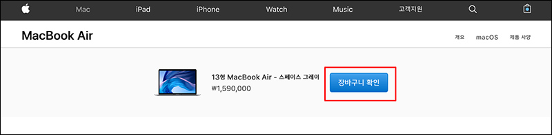 별도의 악세사리를 구입할 필요가 없다면 장바구니 확인을 다시 누릅니다.