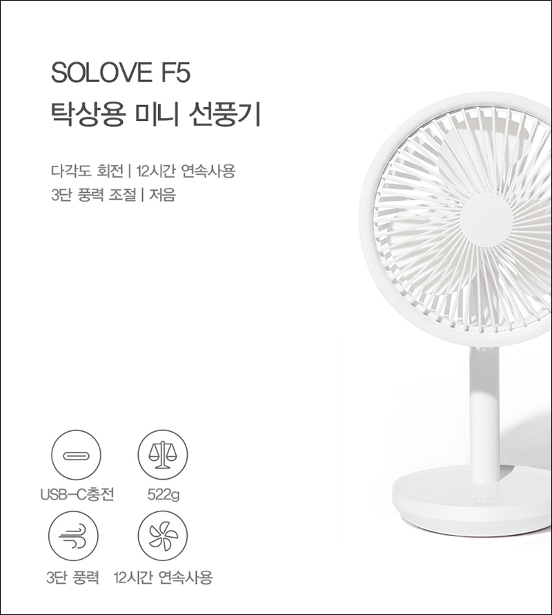 탁상용 미니 선풍기 추천, 샤오미 선풍기 Xiaomi SOLOVE 2019 F5 직구 가격은?