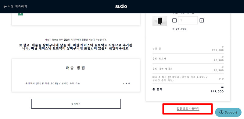 아참, 수디오(Sudio) 제품은 공홈에서 구입하는 것이 가장 효율적이다. 물류창고가 한국에 위치하고 있어 직구 때문에 오래 걸리는 배송이 아닌 3일 내 배송으로 바뀌었고, 'tolv_link' 할인코드를 입력하면 추가로 15%나 할인가로 구입할 수 있다.