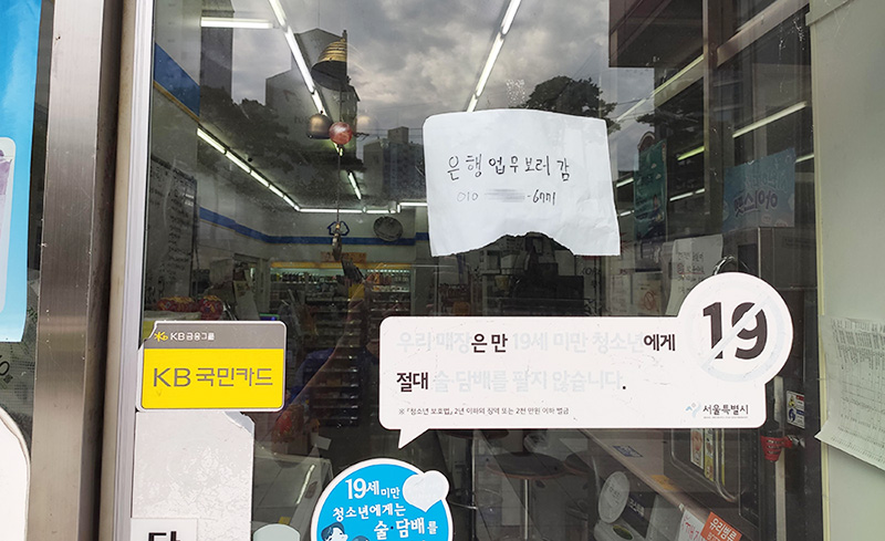 주말에 편의점 문 앞에 '은행업무보러 감' 쪽지 붙여놓고 도망간 알바...