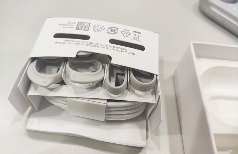 구성품 박으세는 추가 이어버드, 그리고 충전 케이블 등등이 있습니다.
