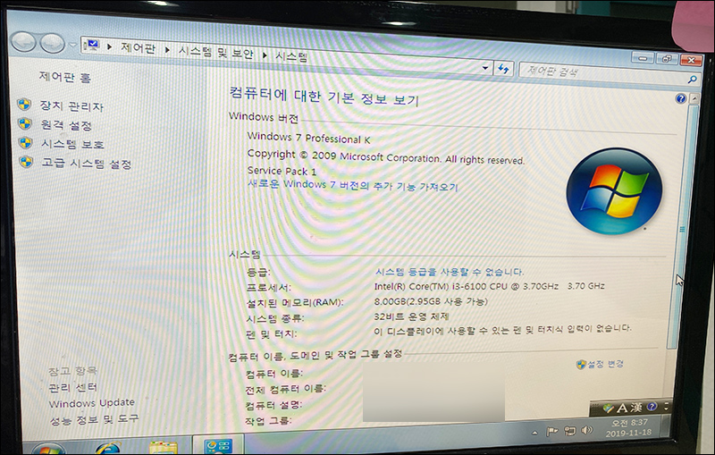 윈도우7 64비트가 아닌 32비트를 설치하는 것이 더 어렵죠.