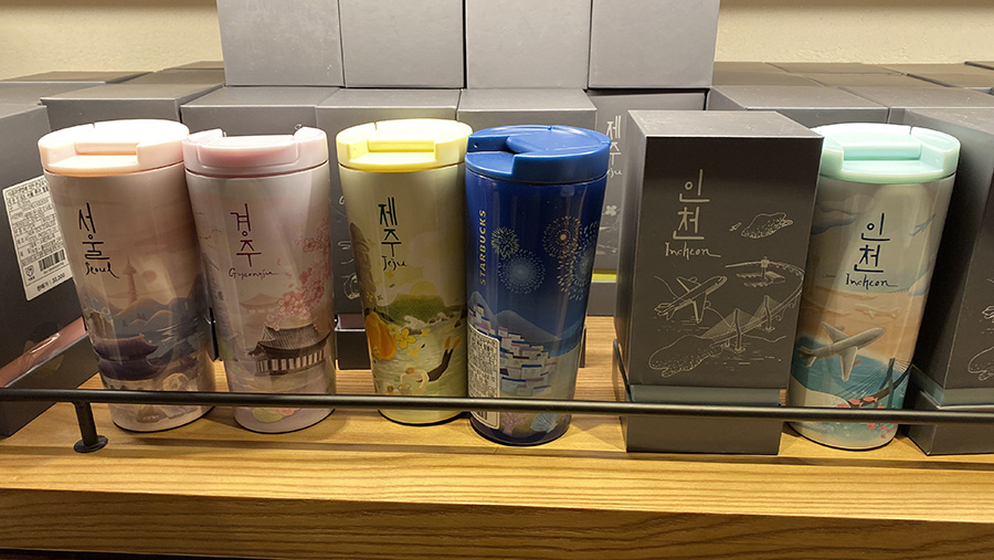 It's a bit hard to find souvenir Starbucks Korea written every city's name.