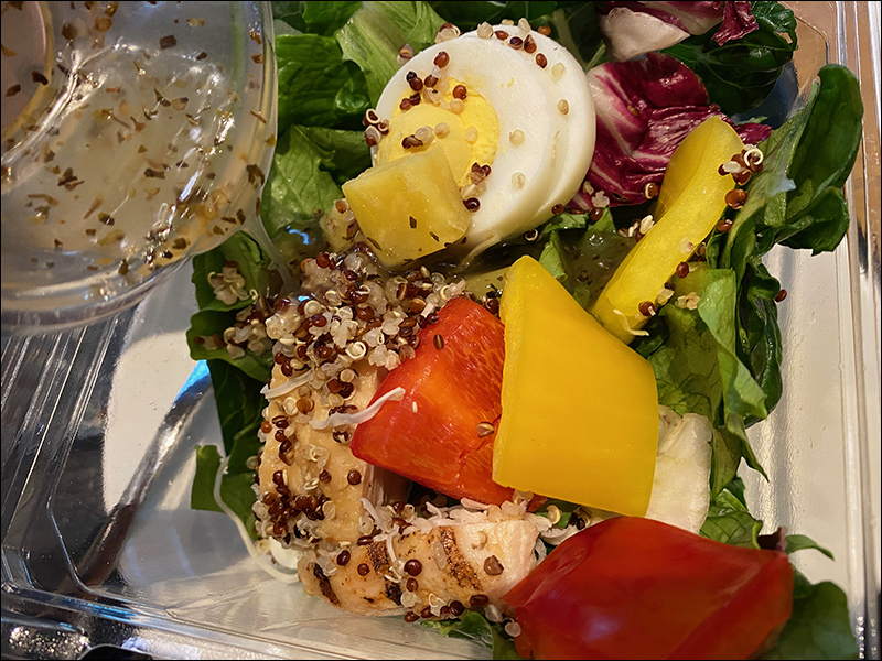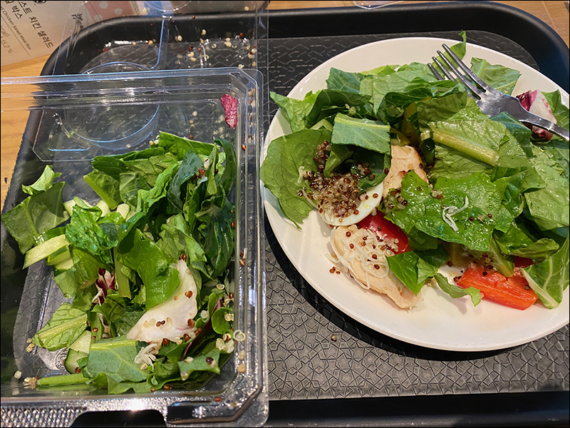 일단 가격은 6500원, 치킨이 많이 들어 있는 것은 아니지만, 야채가 꽤 많다는 것이 좋네요. 샐러드에 충실하다고 해야 할까... 신기한것은 용기가 분명 플라스틱 소재인 것처럼 보이는데, 자연적으로 분해가 되는 재질이라고...