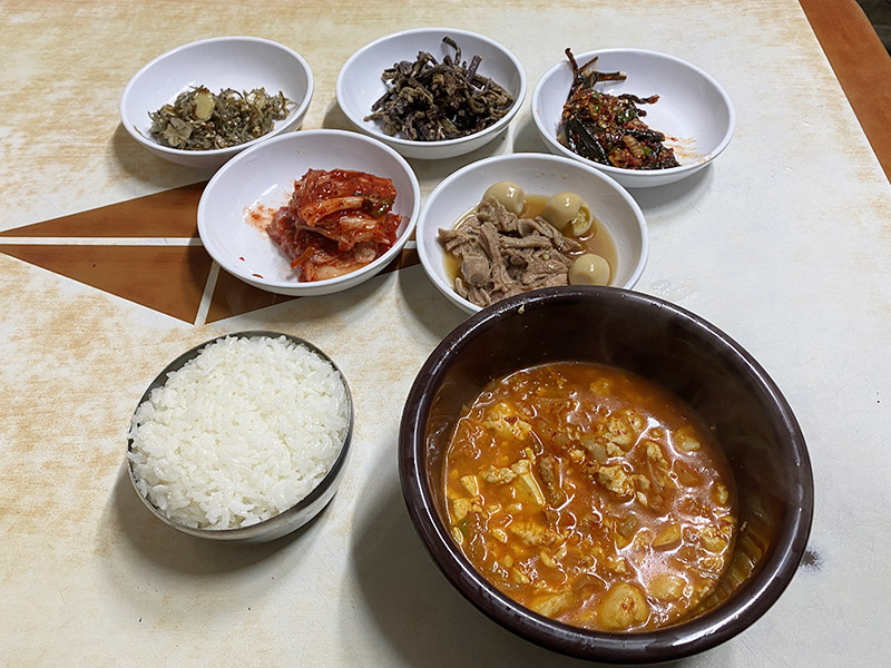 백반집이라 반찬은 그때그때 다른 듯, 현금으로 5500원이면 식사를 마칠 수 있다.