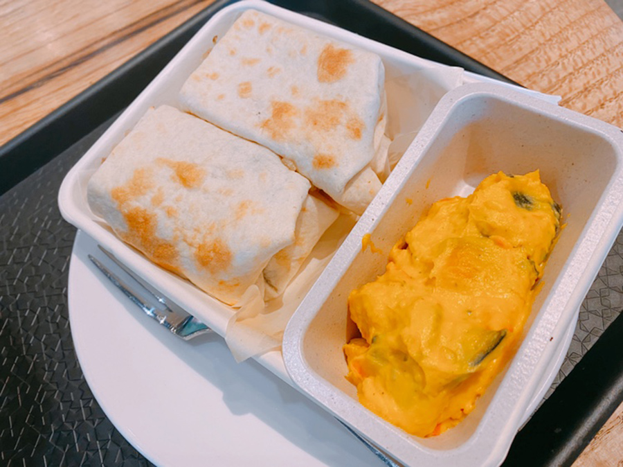 파스타 보다는 새우 또는 사이드 메뉴로 들어있는 고구마가 조금 먹을만 하다. 부리또가 없을 때 한번 먹어봤는데 사실 다른게 있다면 다른 걸 선택하는 것을 추천.