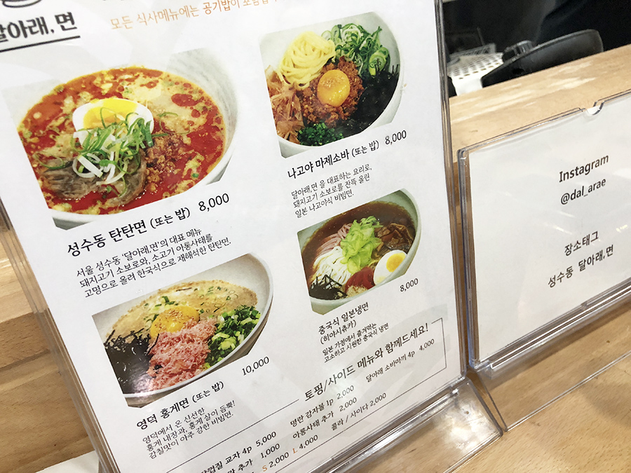 당시에는 청담동에 달아래면 1호점이 있었고, 성수동에슨 달아래면 2호점이었죠. 메인 메뉴는 역시 탄탄면.
