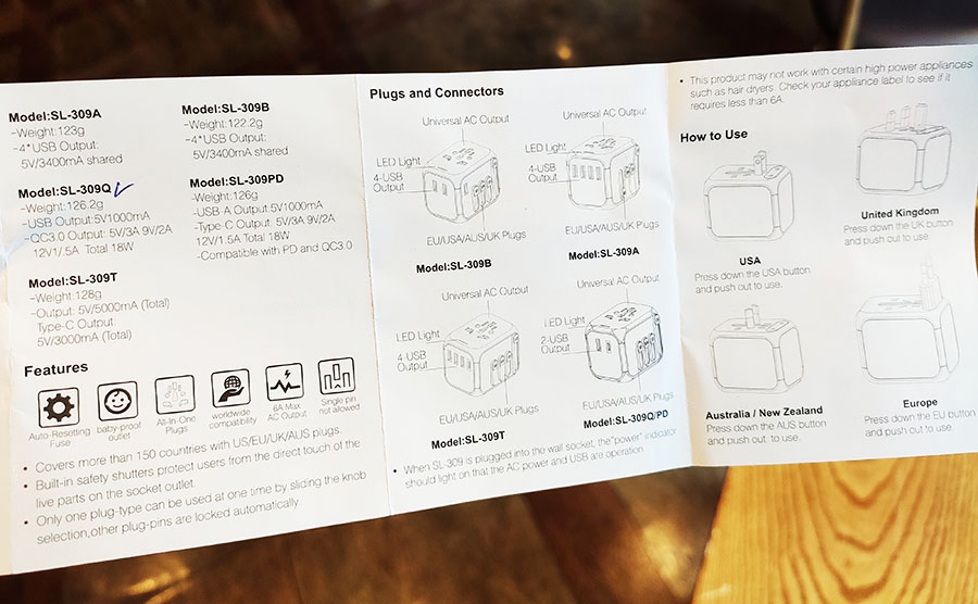 불연성 재질인 것은 기본이고, 오토 리셋팅 퓨즈를 가지고 있어서 전압이 불안정해도 안정적으로 연결을 해주는 안전장치가 있어서 믿을만 합니다. QC 3.0 고속 충전이 가능한 모델과 2200W까지 지원하기에 정말 추천할만한 여행용 멀티 플러그 입니다.