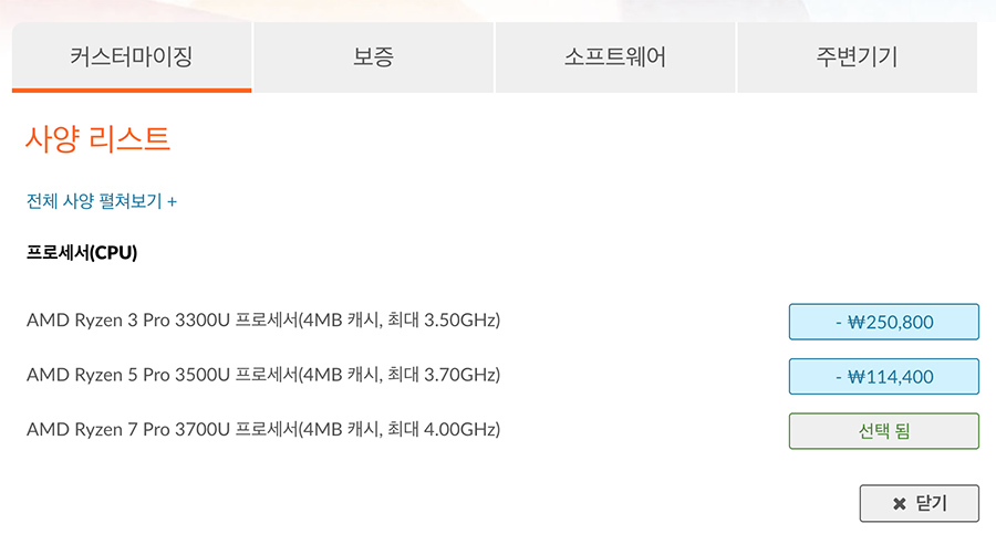아참, CPU는 AMZ Ryzne 7 Pro 3700U로 올렸구요 ^^