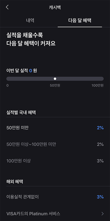 기본적으로 비자(Visa) Platinum 등급의 혜택을 받을 수 있군요.