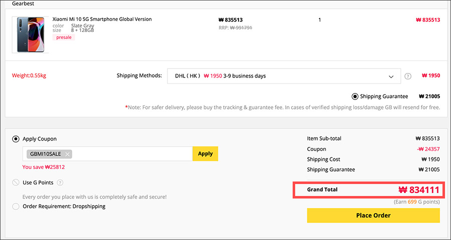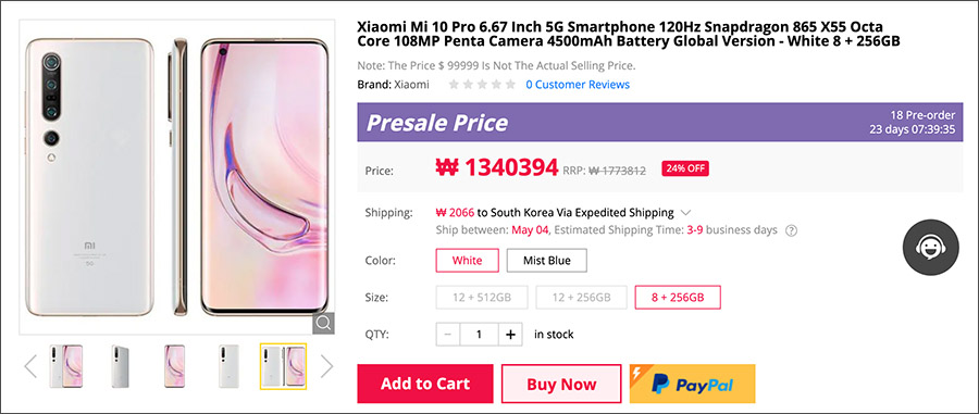 IT가젯 기어베스트(Gearbest)에서는 샤오미 Mi10 글로벌버전을 독점으로 사전 예약 출시하기도 하였고, 할인 쿠폰 코드를 입력하면 다른 곳보다 더 경쟁력 있는 가격으로 구입을 할 수 있기에 정보를 공유해봅니다.