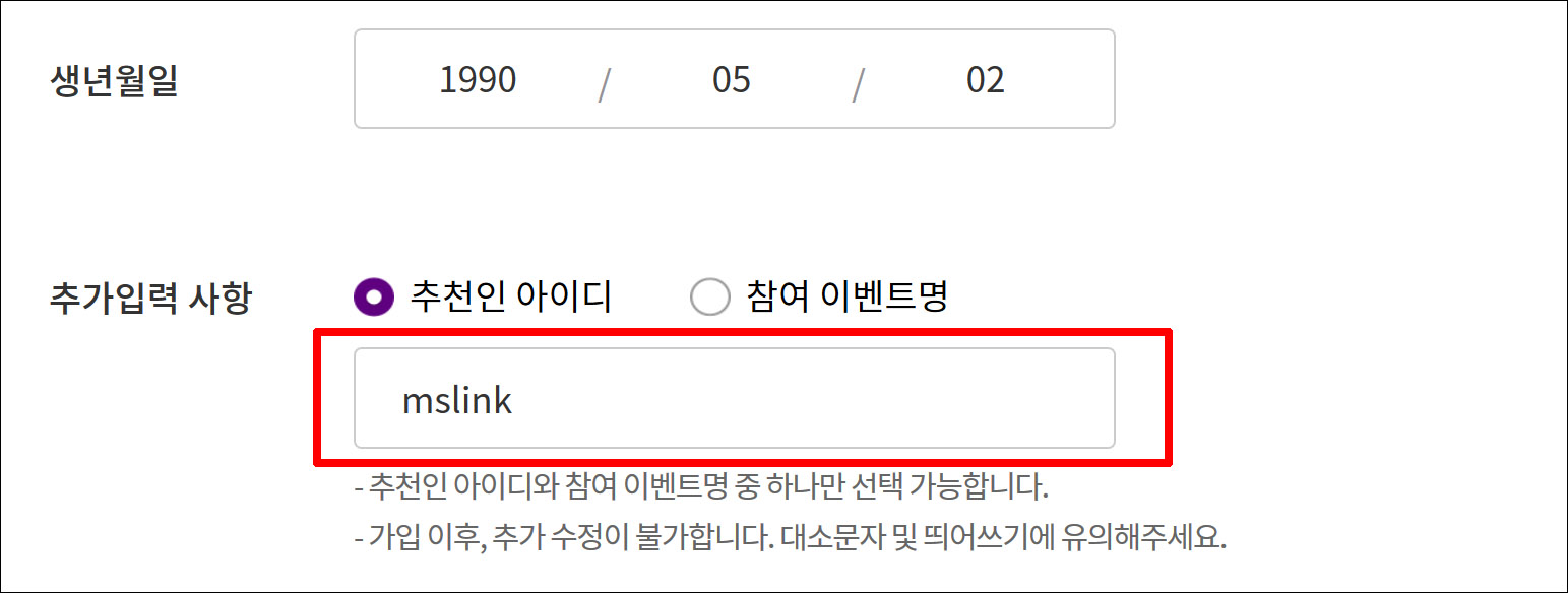 회원가입을 하실 때 공란으로 두지 마시고, 추천인 아이디가 딱히 없으신 분들은 아래처럼...