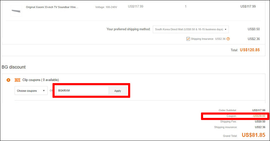 역시 쿠폰코드를 적용해서 더 저렴하게 구입할 수 있는데요. 약 4만 7천원 정도 할인을 받을 수 있어서... 81.85$ (약 10만원)에 한국으로 직구가 가능합니다.