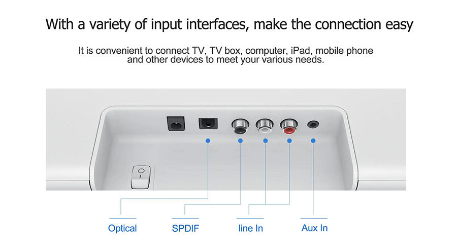연결 단자는 광케이블, SPDIF, Line In, Aux In 모두 갖추어져 있어서... PS4나 콘솔 게임기, TV 그리고 컴퓨터도 연결을 할 수 있습니다.