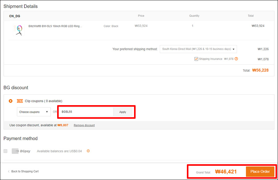 가격은 약 5만 6천원인데요. 아래의 쿠폰코드를 입력하시면, 약 1만원 할인된 4만 6천원에 직구가 가능합니다. :)