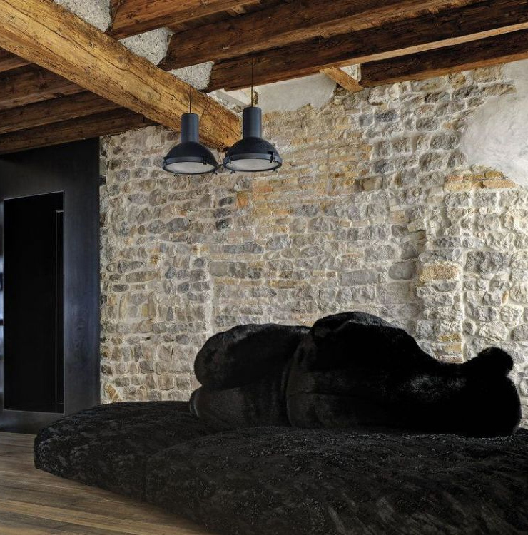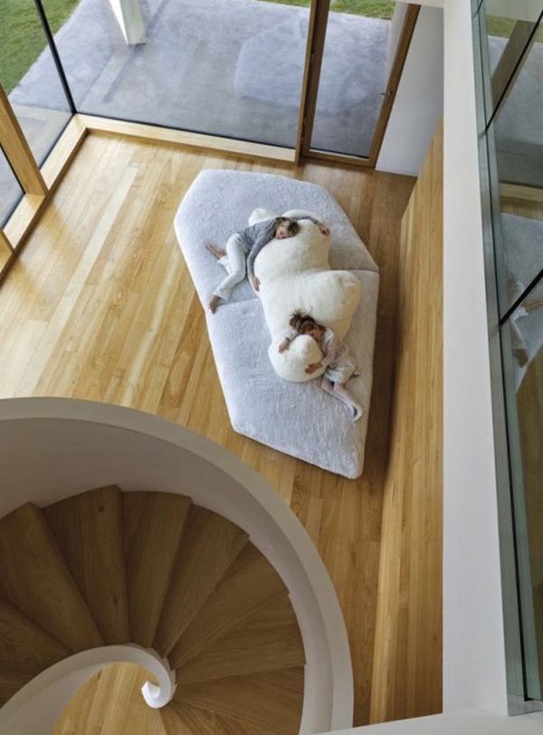 커다란 흰색 소파는 프란체스코 빈파레(Francesco Binfare) 디자이너가 만든 가구로, 팩 소파(Pack Sofa)라는 이름을 가진 제품이라고 합니다. 북극곰이 있는 빙하 얼름 바닥을 모티브로 하였기 이런 이름이 붙었다고 하는데, 질감을 마치 얼음결 처럼 표현했다고 하네요.