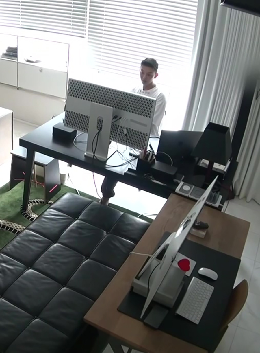 유아인은 맥북프로 16인치를 연결해서 사용하고 있습니다. 이 맥북프로도 기본 320만원이기 때문에, 저 책상 위에 올라가 있는 컴퓨터는 천만원 이상이라고 보시면 될 것 같아요 ^^