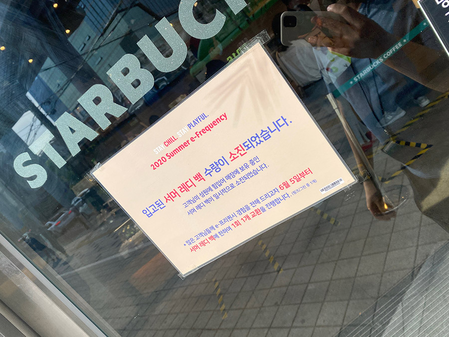 오픈하기 2~3시간 전에 20명 이상의 사람들이 줄을 서고, 앞에 서있는 사람만 겨우겨우 받아갈 수 있는 스타벅스 2020 서머레디백.