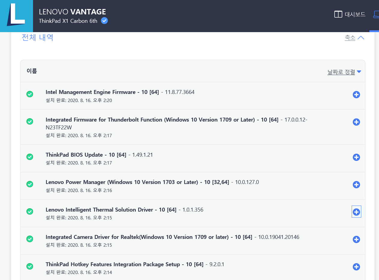 업데이트를 한 이후에 발생한 일이라서... 뭐가 문제인가 Lenovo Vantage에서 문제를 탐색해보니..