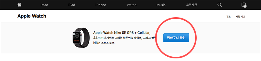 원하는 색상, 시계줄 스트랩 등은 골랐다면 이제 장바구니 확인으로 가서...