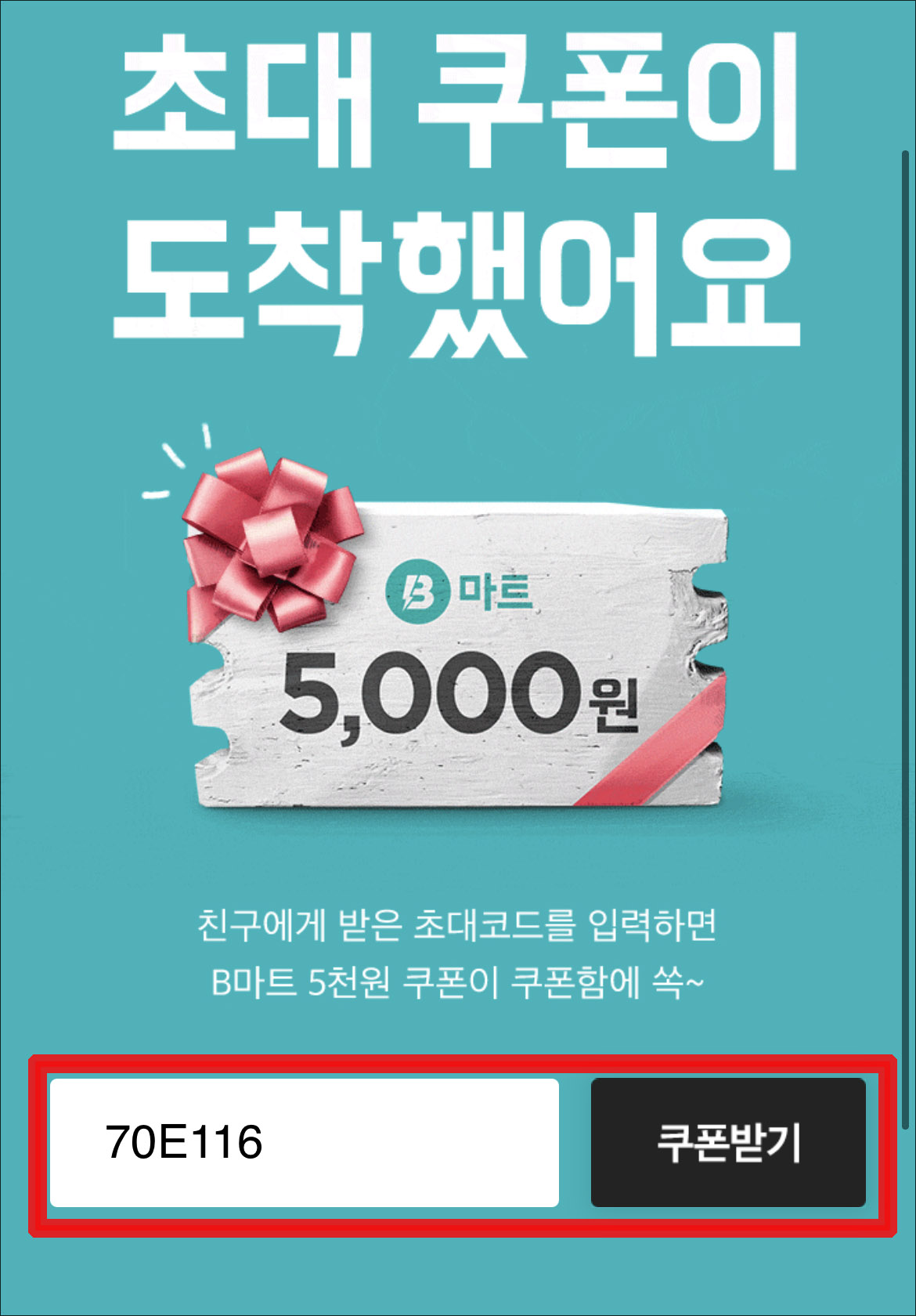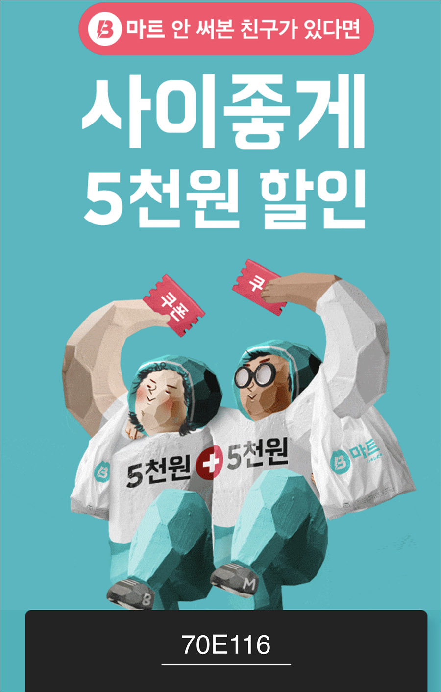 B마트 친구초대 쿠폰코드: 70E116