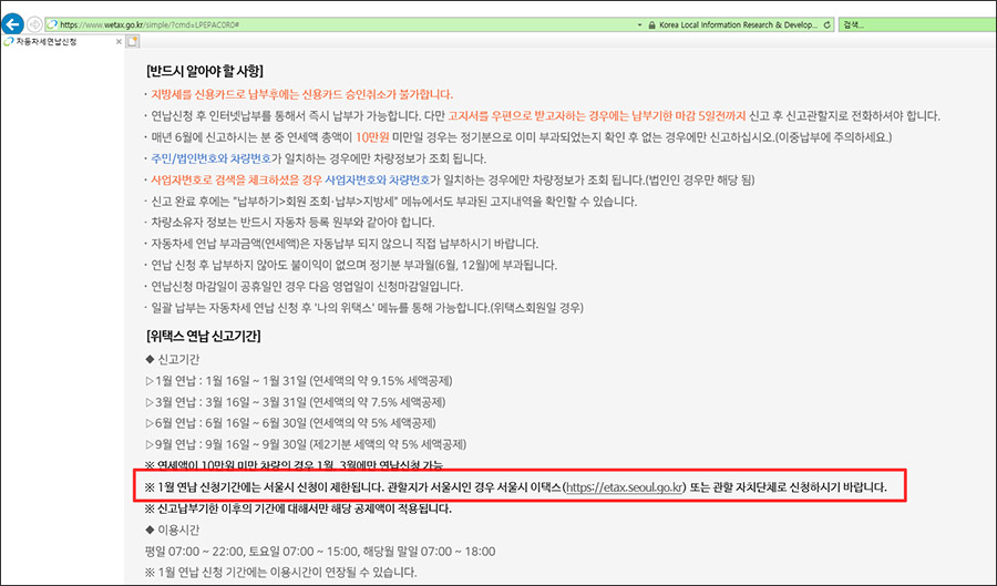 읭? 서울시는 왜 이텍스(etax)로 가야 하지? ㅡㅡ;