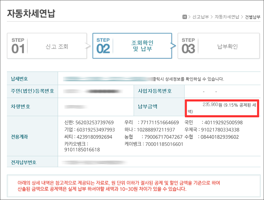 납무금액 235,960원이 나오네요. ㅜㅠ 넘 많이 나오는 것 같습니다. 대한민국 세금 너무 높아지기만 하는 것 같아요.