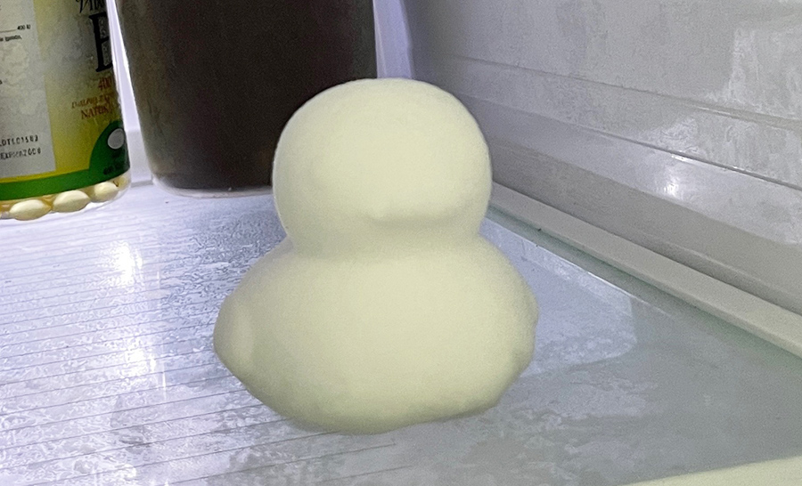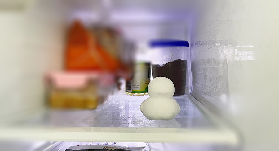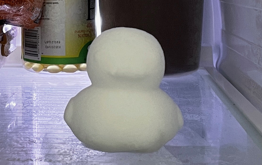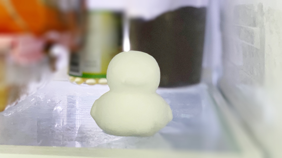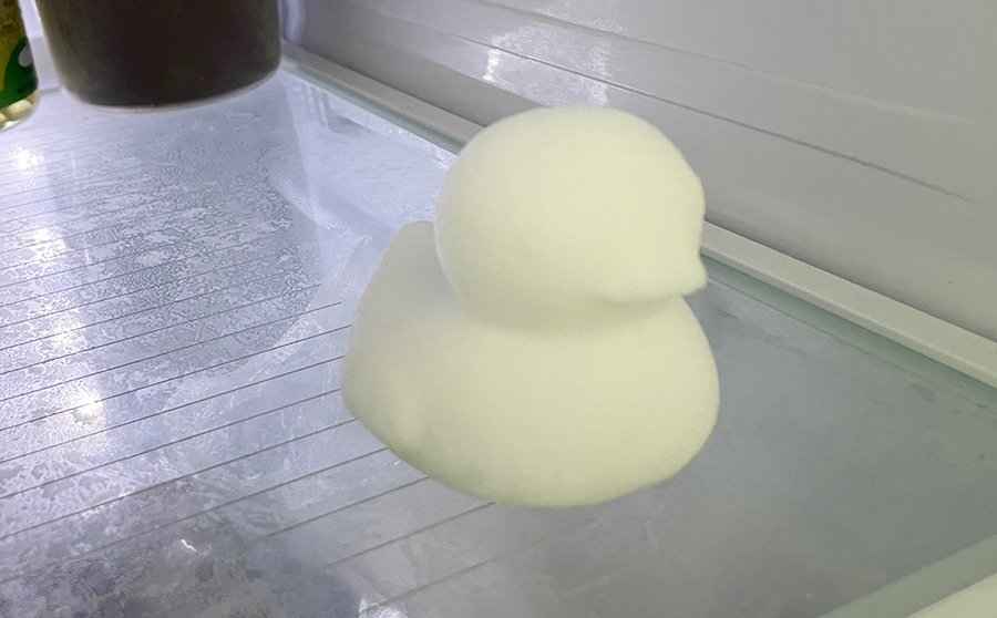 냉동실 안에 오리가 들어있다. ㅎㅎ 눈으로 뭉쳐서 만든건지, 냉장고 안에 있는 얼음 성애로 만든건지...