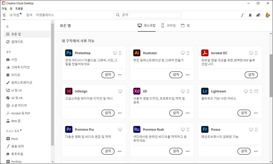 그래서 주위 분들에게도, 개별 앱을 사용하기 보다는, 가장 저렴하게 모든 앱을 구입(구독)해서 사용할 수 있는 Adobe CC 모든앱 플랜을 추천드리고 있는데요.