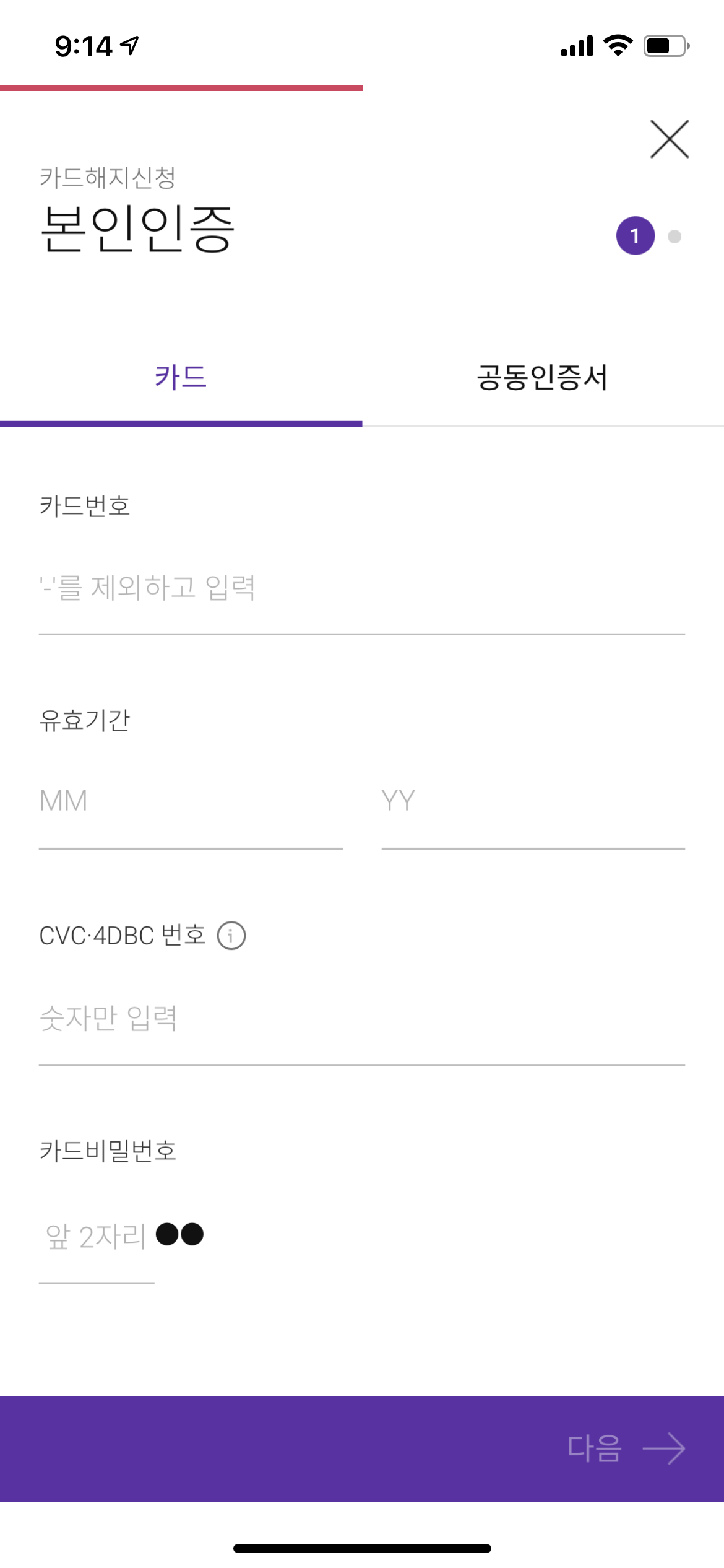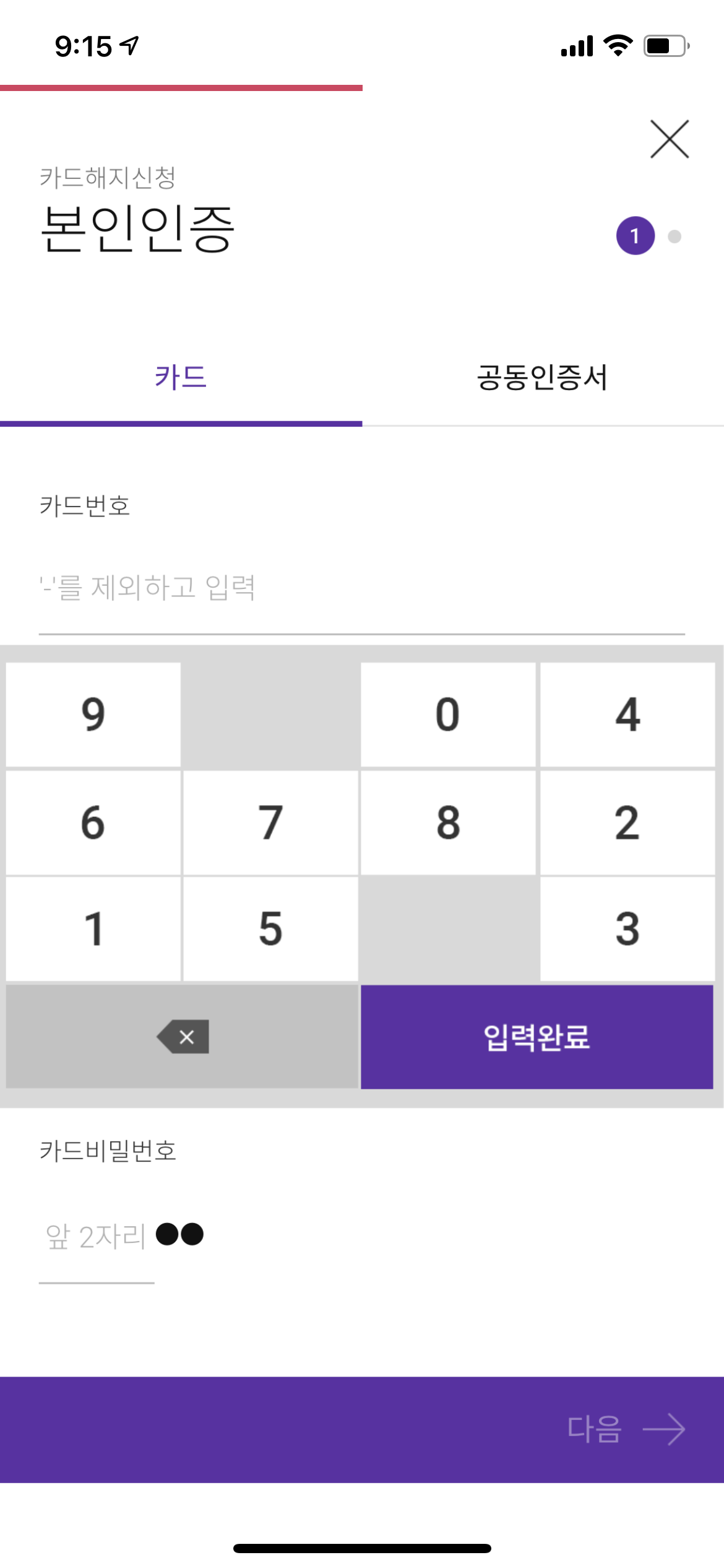 그러면 본인인증을 해야 하는데, 공동인증서로도 할 수 있지만 아이폰 유저가 앱마다 공동인증서(공인인증서)를 다 해놨을리는 없고, 카드번호로 일단 인증을 하고 넘어가봅니다.