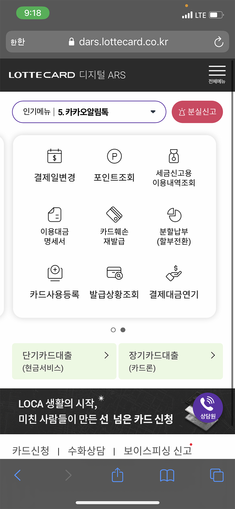 결과적으로 롯데카드는 전화까지 해야 하고, ARS방식도 이분화되어 있어서 오히려 더 복잡하고 힘들었던 것 같다.