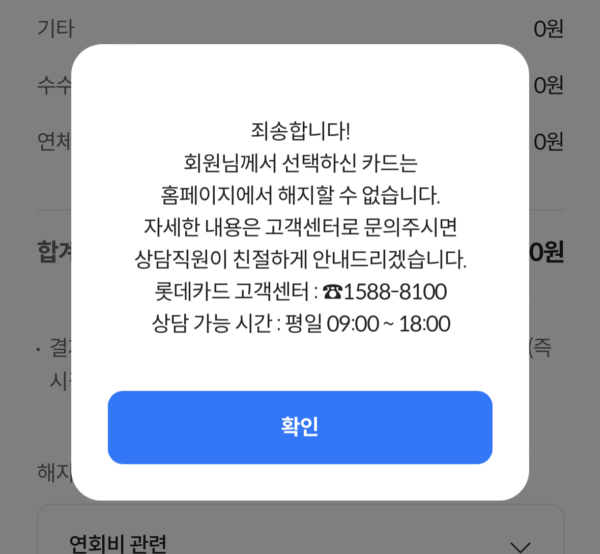 신한카드, 삼성카드, KB카드 등 대부분 신용카드는 앱에서 간단하게 해지를 할 수 있었는데...