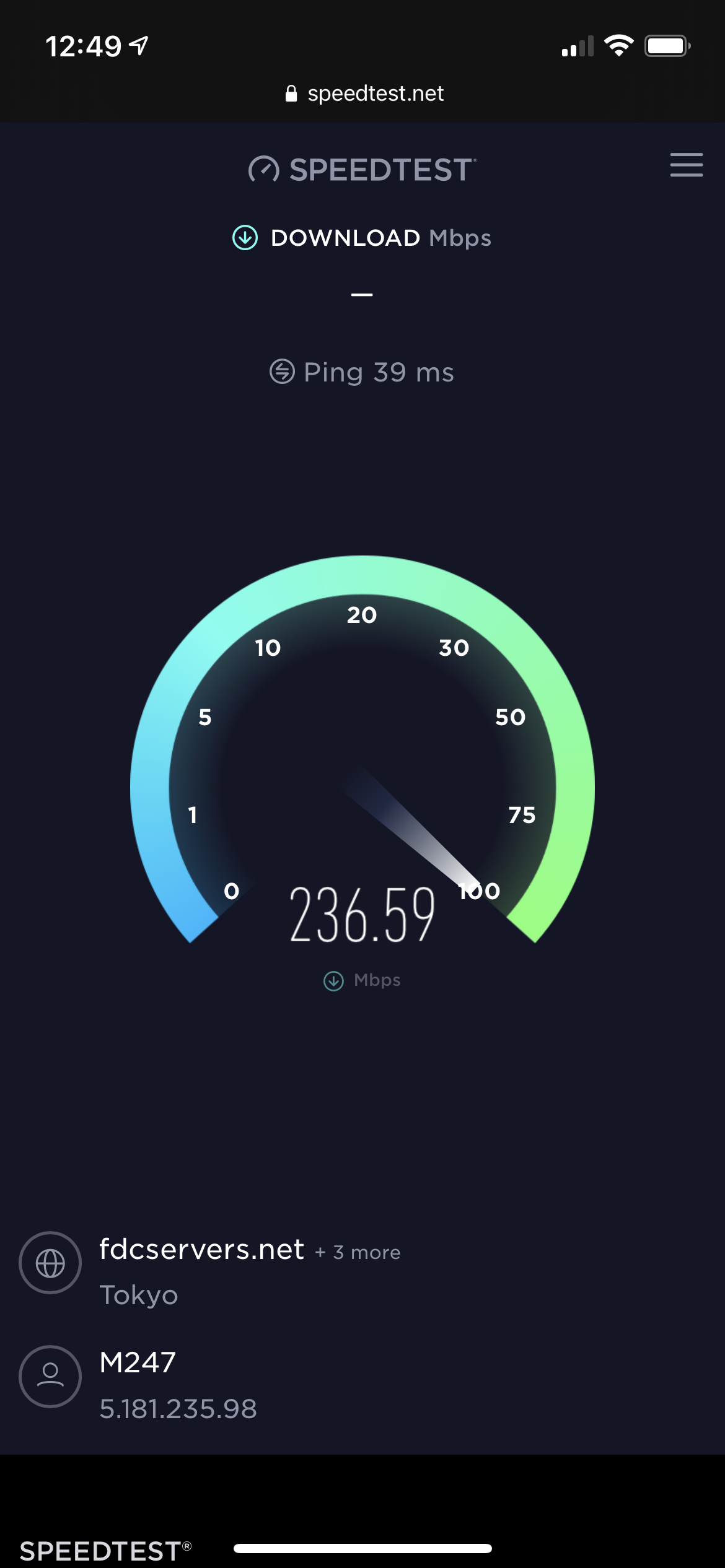 IP주소를 확인해보니 일본에서 접속된 것으로 잘 뜹니다. 일본에서만 접근 가능한 사이트들도 매우 잘 뜹니다. 자 이제 속도를 체크해볼까요? Speedtest.net에 접속해봤습니다.
