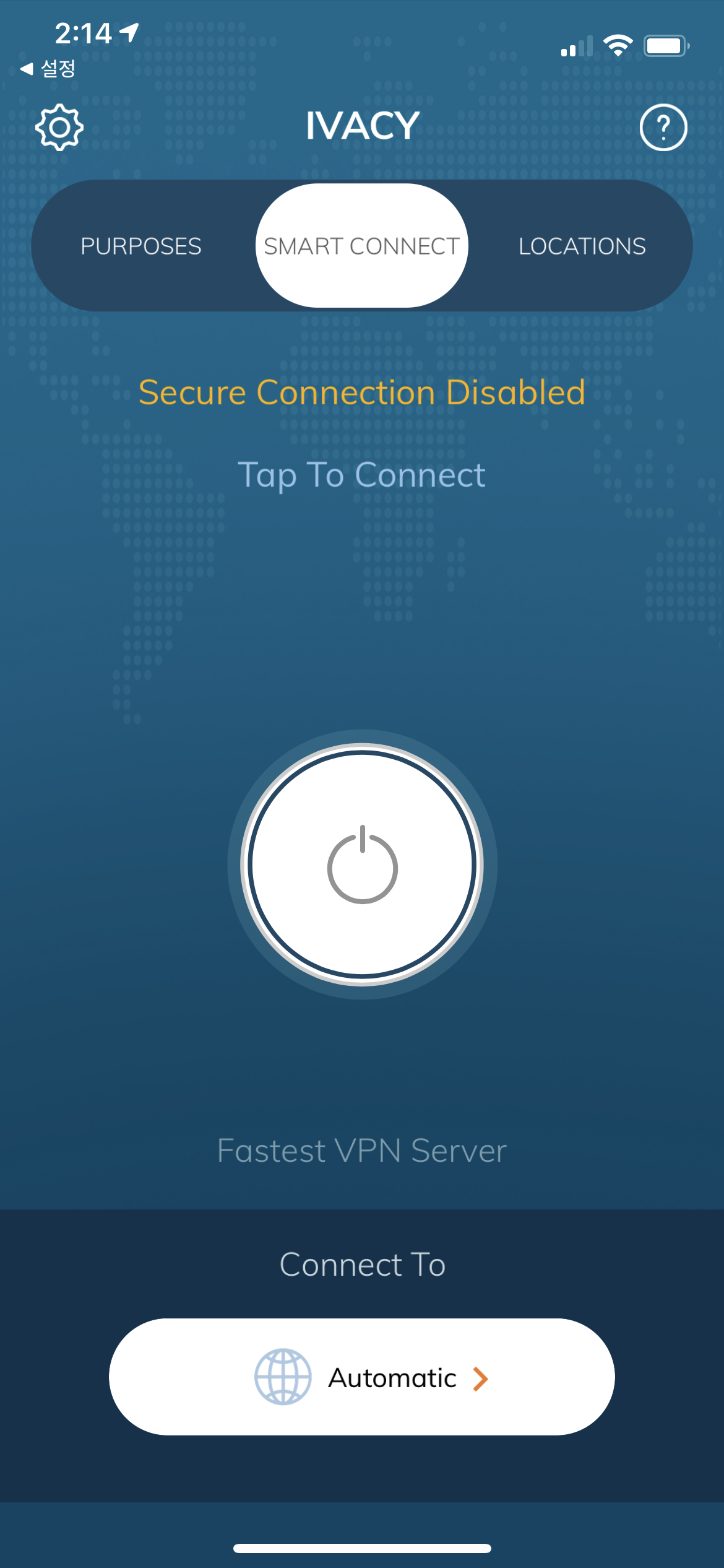 일단 아이폰에서 IVACY라는 앱을 찾으면 IVACY VPN 앱을 사용할 수 있습니다. VPN 구성을 허용하고, 내가 원하는 접속 국가를 선택한 뒤 가운데에 있는 전원버튼을 누르면 연결이 되게 되어있는데요.