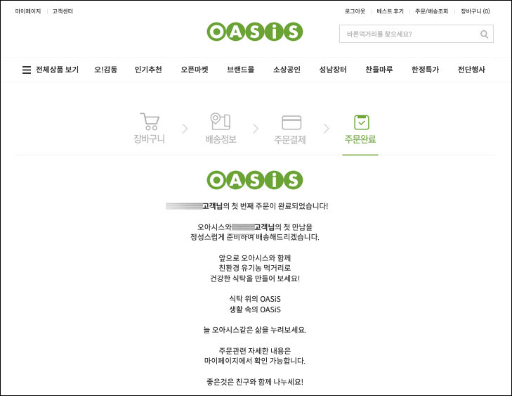 오아시스 새벽배송 첫구매 후기