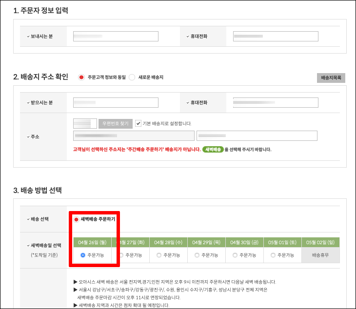 다행이 제가 사는 곳은 오아시스 새벽배송이 되는 곳이네요 ^^ 마켓컬리 처럼, 오늘 밤에 주문했는데 바로 내일 온다니까 아직도 신기하기만 합니다.