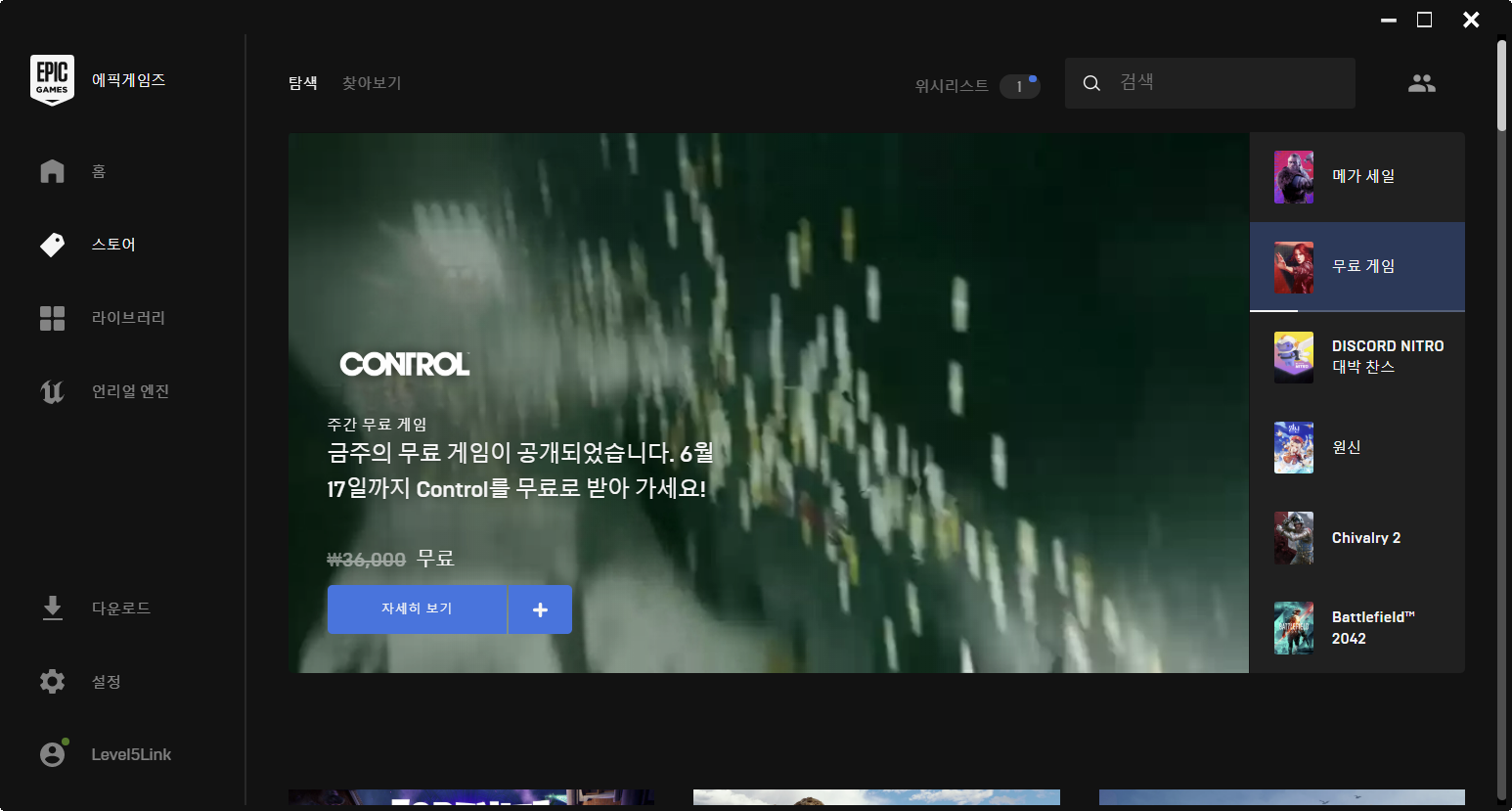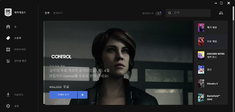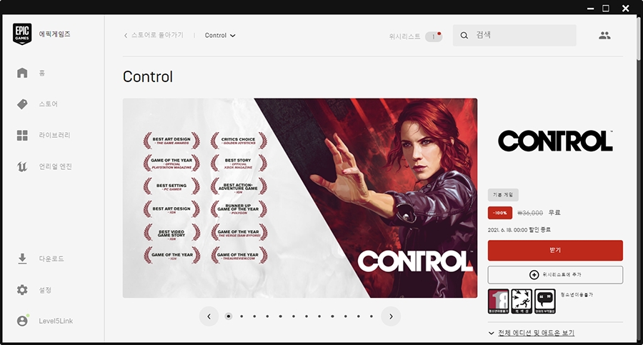 콘트롤 게임 6월 17일 까지 에픽에서 무료!