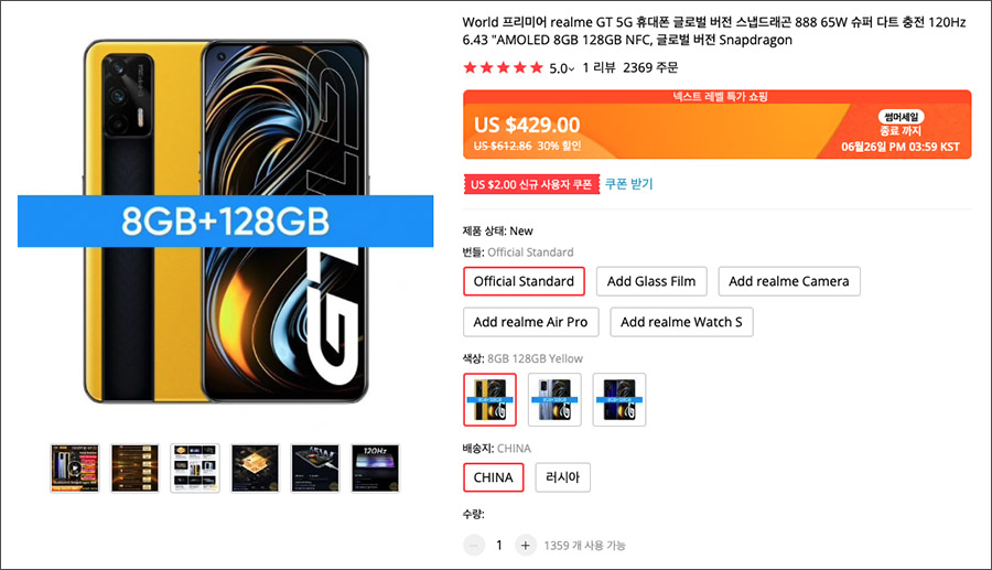 ** 이번에 스마트폰을 알리에서 직구한다면, 리얼미GT 5G를 선택해보세요. 역시 스냅드래곤 888의 성능은 다르더군요. :)