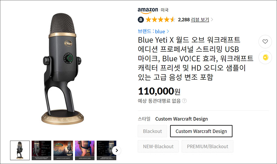 :: 블루 예티 X 워크래프트 에디션 방송용 마이크 구입하러 바로가기 ::