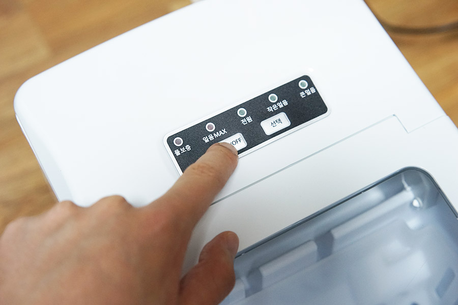 가정용 제빙기이고... 적당히 쓰기 좋은 크기 입니다. 한글로 되어 있어서 사용법도 그다지 어렵지 않구요.