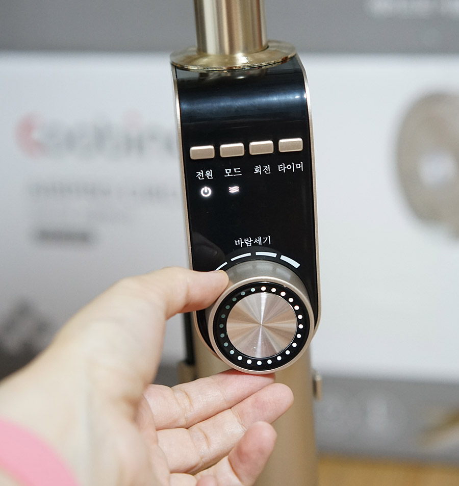 이 제품은 바람세기 조절이 24단으로 되어 있어서 매우 세세하게 풍량을 조절할 수 있고, 각도 조절이 자유로워 좋더군요. 리모콘도 있어서 원격 조절이 되고... 30도~90도 회전 운행도 되구요 ^^