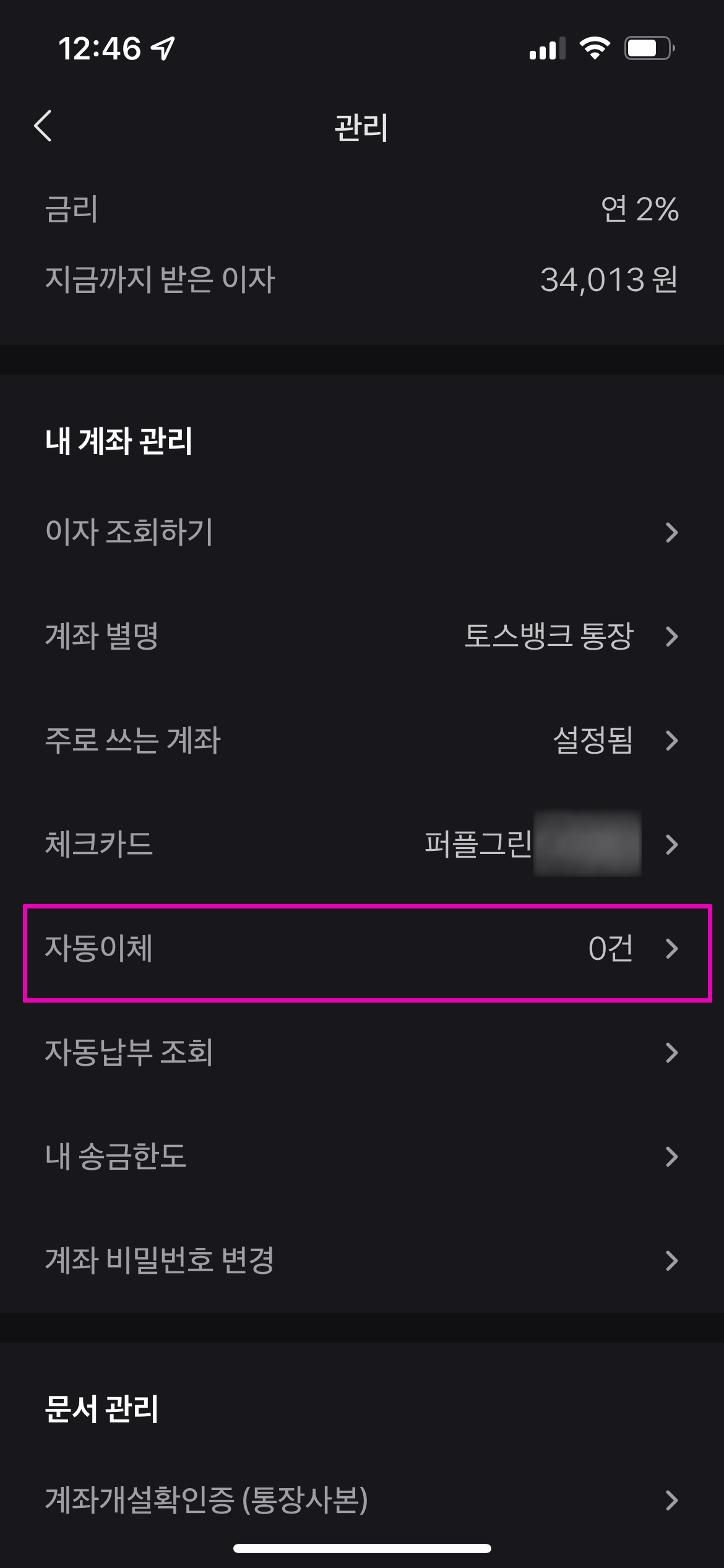 이 화면 자체는 자동이체를 거는 공통화면이라서, 토스뱅크 말고 오픈뱅킹이나 펌뱅킹으로 연결된 다른 출금계좌들도 설정이 가능하거든요. ㅎㅎ