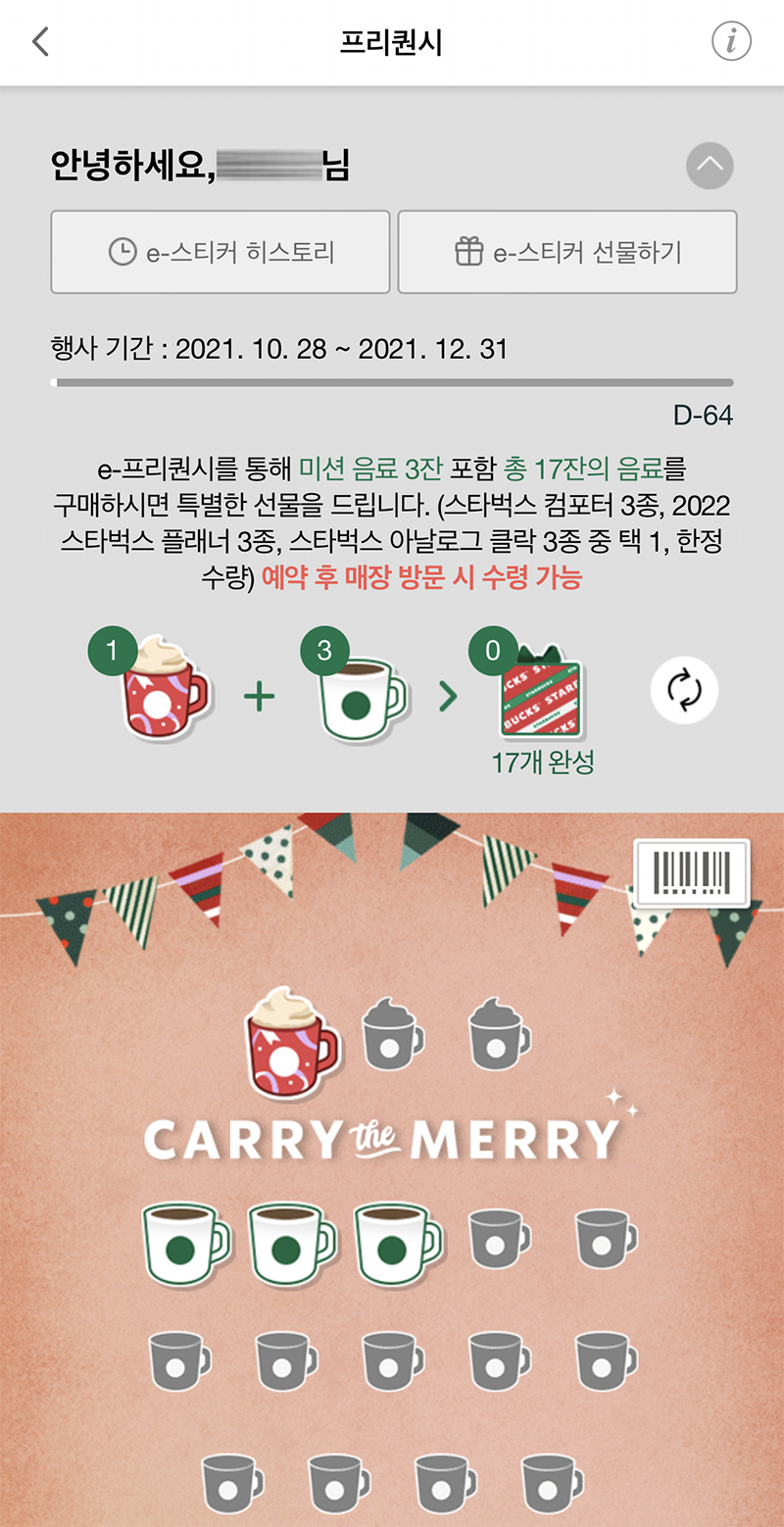 어김없이 올해 크리스마스 시즌에도 스타벅스 이프리퀀시 기간이 돌아왔습니다.