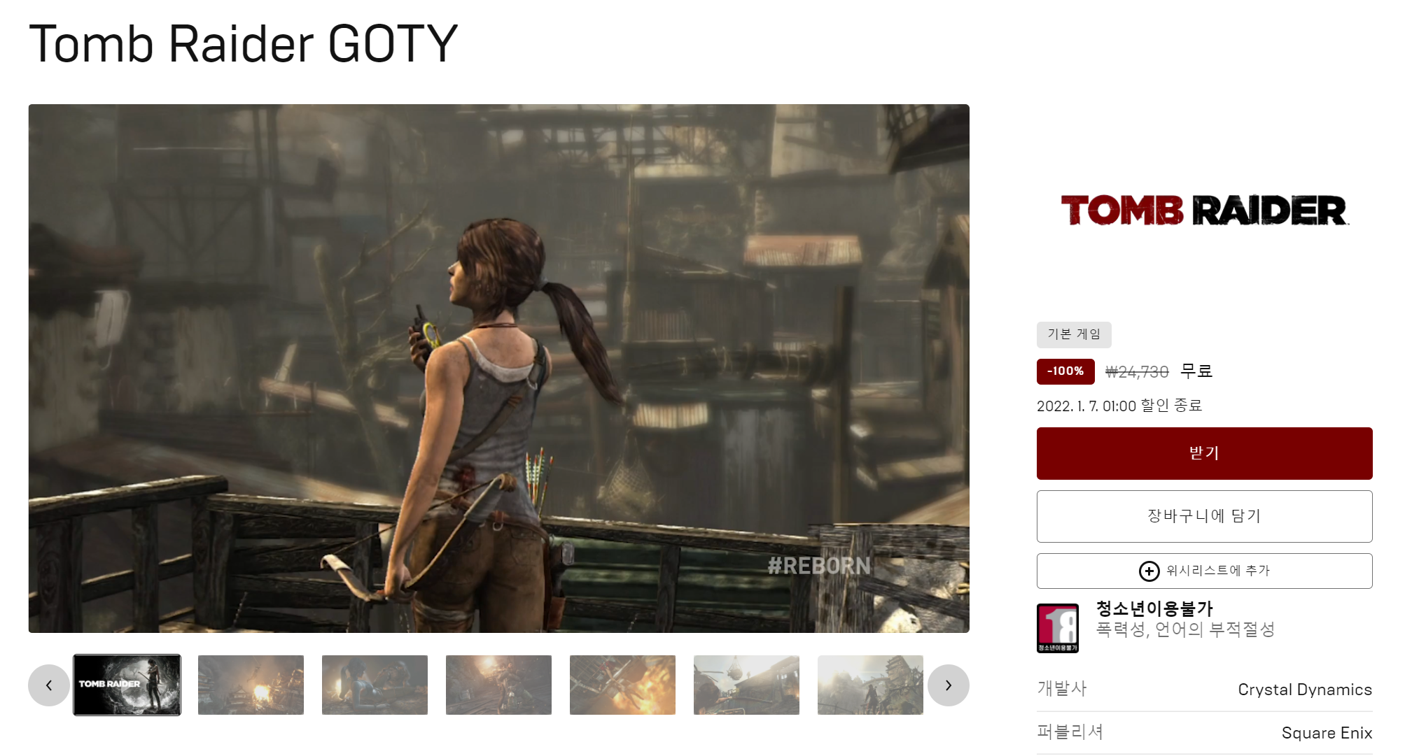 역시 에픽 게임스(EpicGames)네요. 툼레이더 3종을 2022년 1월 1일 기념으로 모두 풀어버렸습니다.