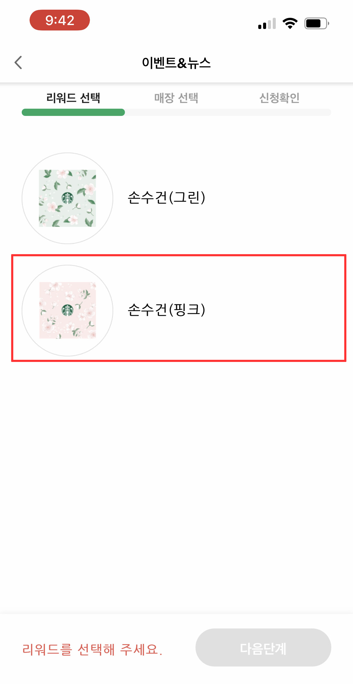 오늘부터 리워드를 신청할 수 있다고 해서 리워드 신청하기 버튼을 찾아서 눌렀죠. 그리고 가장 가까운 매장을 선택했는데요.
